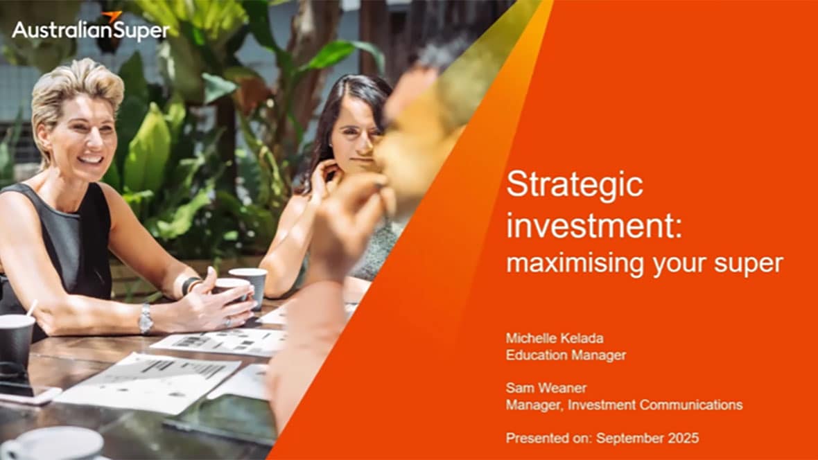 Good evening and welcome to our webinar Strategic Investment Maximising Your Super. This session offers a behind the scenes look at how AustralianSuper's investment strategies have delivered long term value through active management, scale and innovation. So whether you're planning for retirement or optimising your current strategy, this webinar can help provide the clarity and confidence you need to stay ahead.